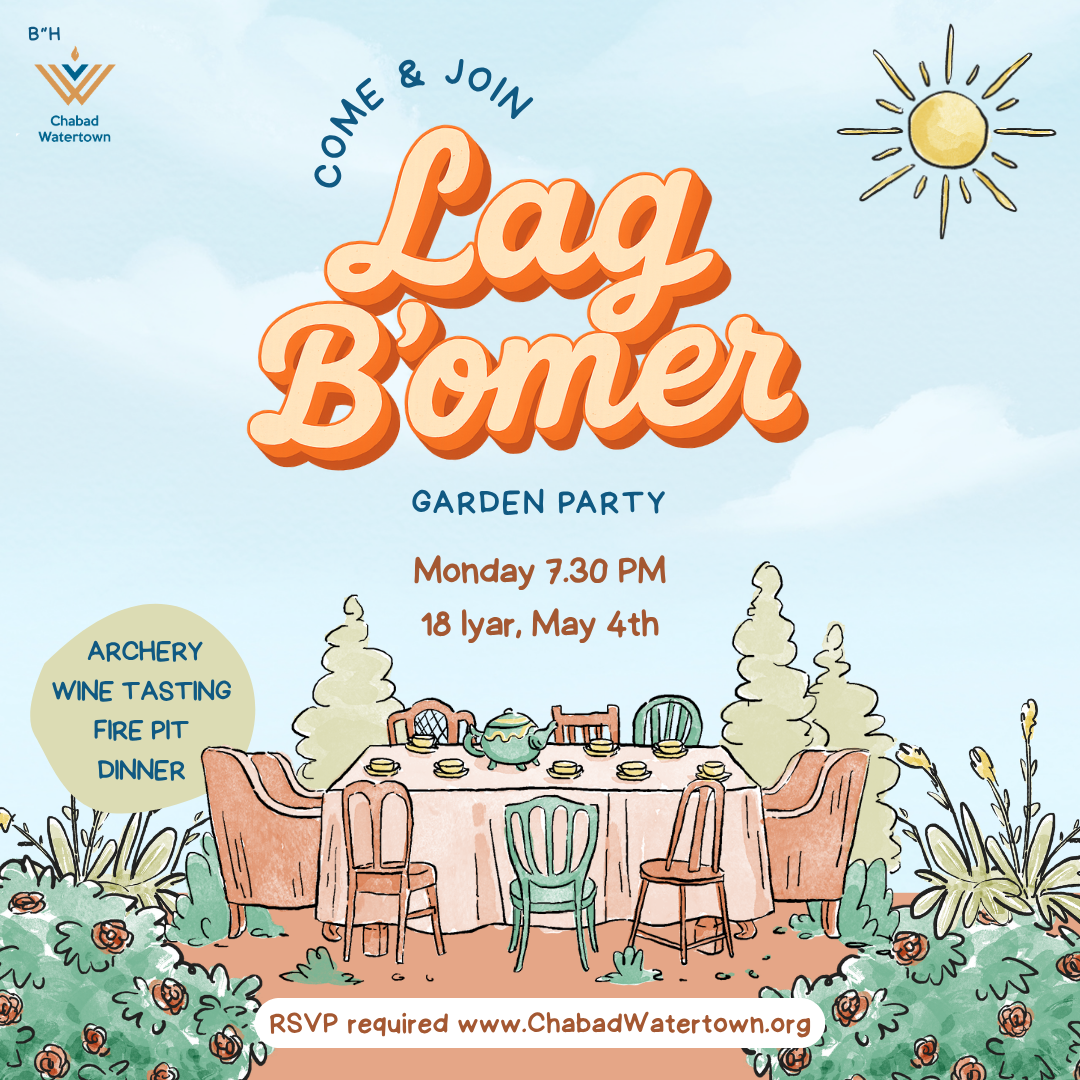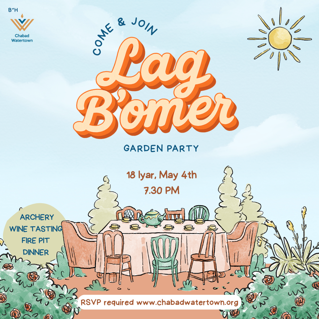 Join us for a warm and festive Lag B’Omer Garden Party under the open sky! Gather with friends and community for an evening filled with delicious dinner, fine wine tasting, archery fun, and a cozy fire pit.